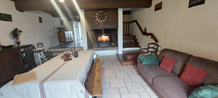 – **Espace de Vie Confortable :** Profitez d’un salon chaleureux avec une cheminée, parfait pour des soirées conviviales. La vue sur le jardin et les montagnes environnantes ajoute une touche de sérénité à votre séjour.
