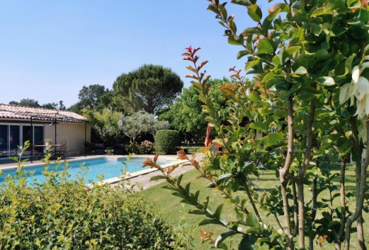 Extérieurs : Jardin, terrasse ombragée, mobilier de jardin, 8 chaises longues, barbecue au feu de bois, piscine privée, 1 salle à manger extérieure 10 places assises, 1 salon extérieur.
