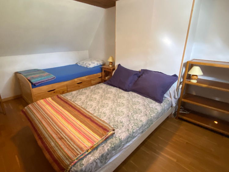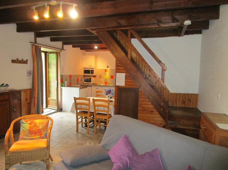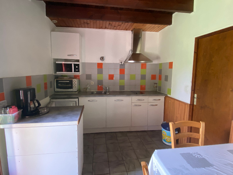 Voir les 12 photosCe logement a deux portes d’entrée : une au pignon donnant accès au salon et la double-porte vitrée sur la façade sud ouvrant sur la salle de séjour-cuisine.