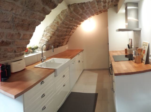 Une cuisine moderne équipée ( four, four micro-ondes plaque induction lave vaisselle p..)