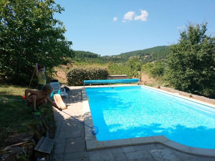 Maison de famille au milieu de la pinède et des vignes. Accès par un chemin caillouteux au milieu d'un vignoble. A proximité de plusieurs sites réputés de l'Ardèche méridionale (gorges de l'Ardèche, vallon Pont d'Arc...). A 1/4 d'heure de la petite ville des Vans très connue pour ses marchés, ses boutiques, son artisanat...