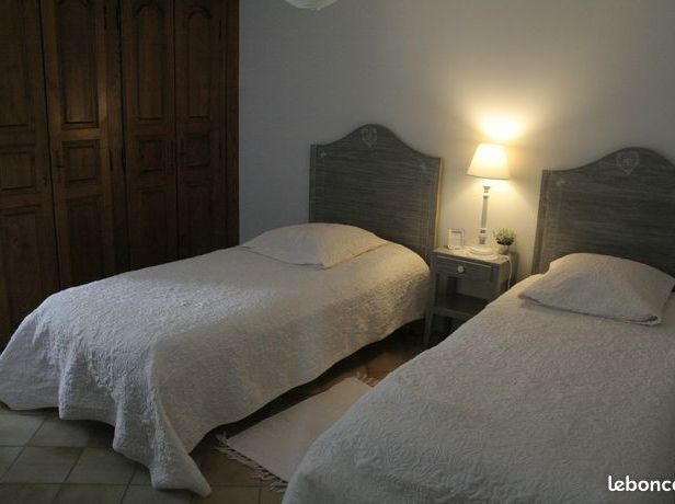 3 chambres dont une en mezzanine : 2 lits de 160cm, et deux lits de 90 cm. Lit à barreaux pour enfant + Lit pliant.