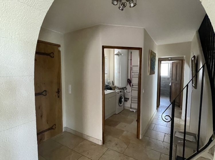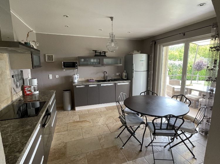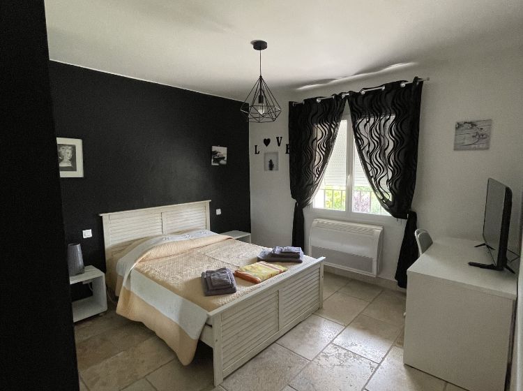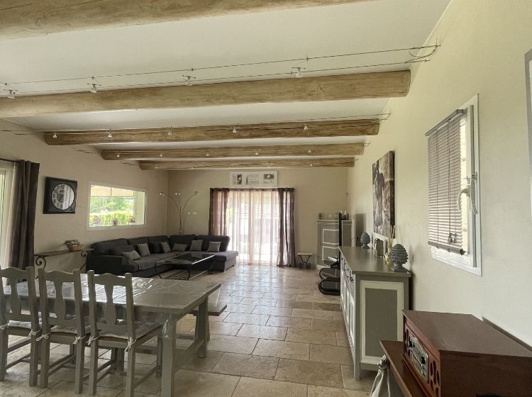 Séjour de 50m2 et cuisine (16m2 )avec suite parentale (lit 180cm) + dressing salle de bain wc au rez de chaussée.