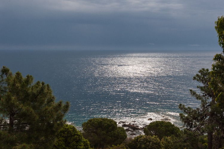 Depuis la terrasse, ciel chargé ! Rochers en bas de la location
