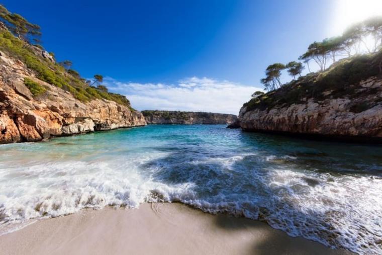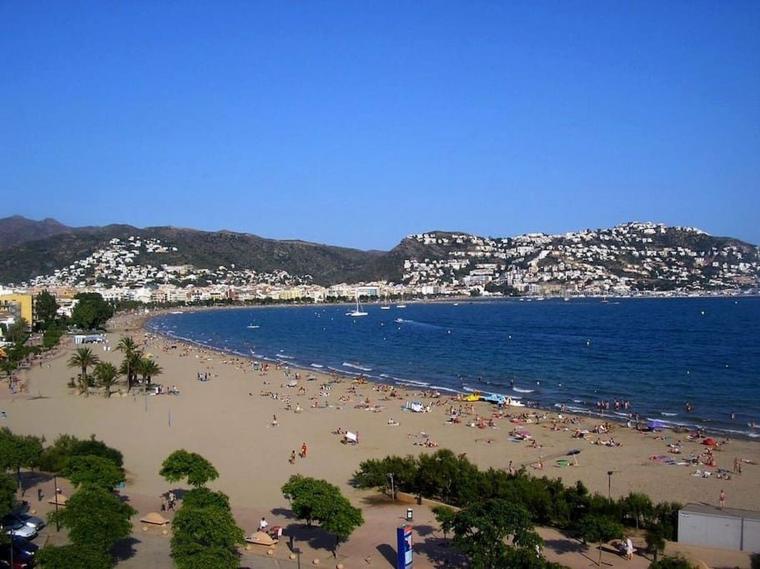 Plage de sable fin à 1300m. et toutes les plages sur 2,3km jusqu’à Rosas.