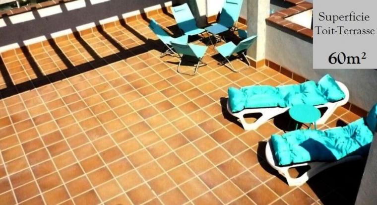 Toit-terrasse supérieur Attique en Duplex de 60m2 privatif, avec Barbecue à charbon (non fourni), chaises hamacs et 4 transats, 130m2 dont 83m2 en 2 terrasses