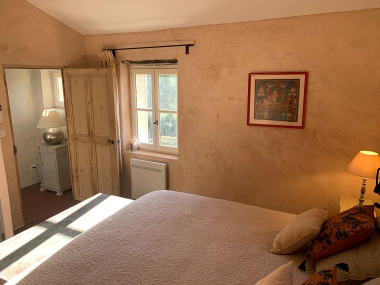 Le studio est séparé du corps de logis. C’est en fait une petite suite comprenant un lit de 140 cm, une armoire et une petite salle-de-douche en marbre (douche (walk in), lavabo et WC). La vue est en surplomb sur la piscine.