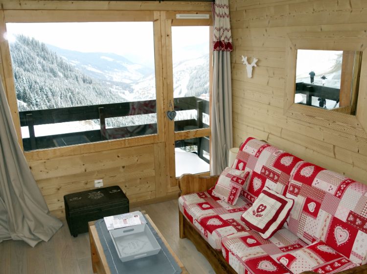 Salon: (canapé lit neuf Rapido ) TV ECRAN PLAT,avec grand balcon et superbe vue sur toute la Vallée de Méribel . PAS DE VIS à VIS.