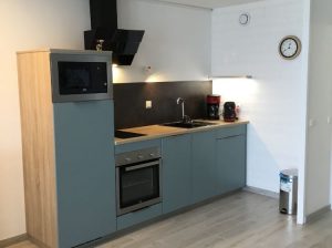 Cuisine aménagée avec fours, frigo-congélateur, lave-vaisselle. Place de parking privative en sous-sol. Ascenseurs.