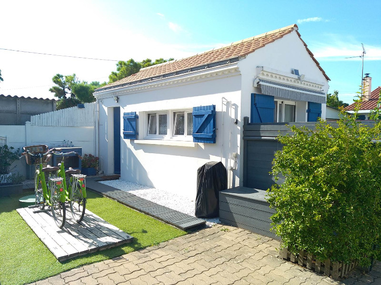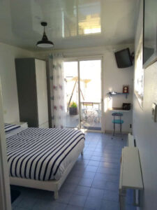 Voir les 7 photosCHAMBRE INDEPENDANTE de 20 m2(rdc) avec un lit de 150 x 200 située 7 avenue des Azalées avec une terrasse privative de 10 m2 équipée d’une table, chaises, fauteuils et d’un store-banne. Elle est équipée d’une salle d’eau avec douche, lavabo, w.-c. et sèche-cheveux. La chambre possède une télévision, un petit frigo, un micro-ondes, une plaque électrique, une bouilloire électrique ainsi que le nécessaire pour une petite cuisine rapide. Un barbecue à disposition. (Charbon de bois non fourni)