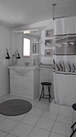 Cuisine : Réfrigérateur-congélateur, four, plaques, micro-ondes, lave-vaisselle.