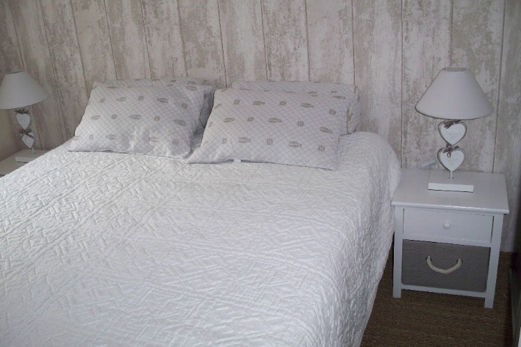 À l’étage : deux chambres privatives. L’une dispose d’un lit en 160 cm et la seconde d’un lit en 140 cm. Un 5ème couchage d’appoint (chauffeuse) est également disponible.