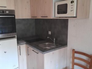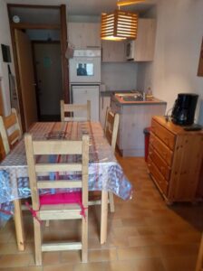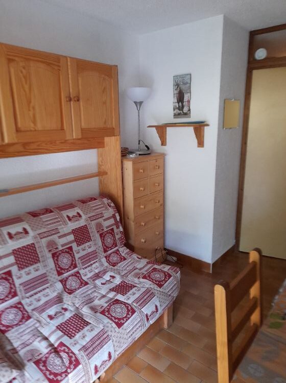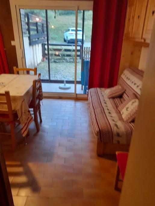 studio avec veranda et jardinet acces direct au deuxieme parking donnant sur la foret.Le studio comprend 1 coin montagne avec 2 lits en 90,1sdb(baignoire),1 wc séparé, 1 piéce principale avec cuisine équipée(four, micro onde,frigo,plaque vitroceramique 2 feux,)tele,rangements; volet électrique