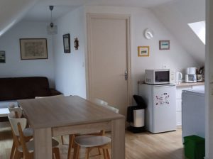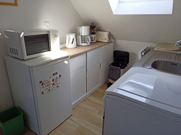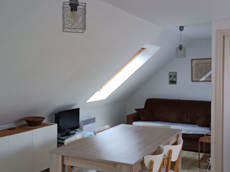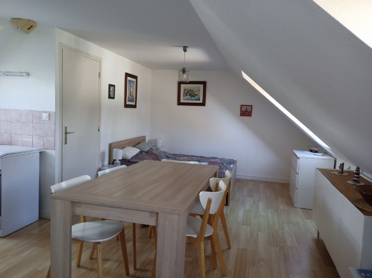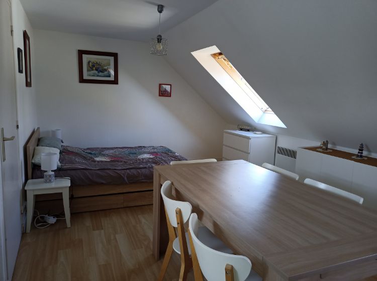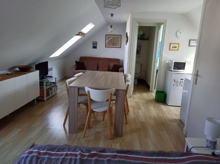 Voir les 20 photosLe studio est situé au second étage d’une maison, en sous-pente.