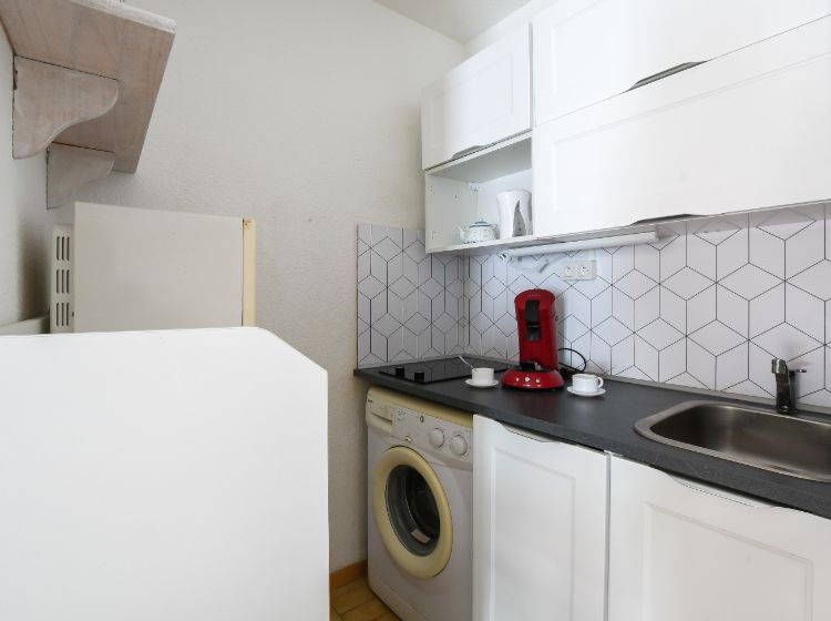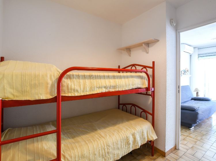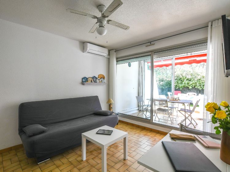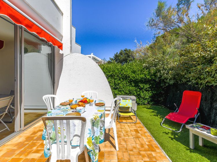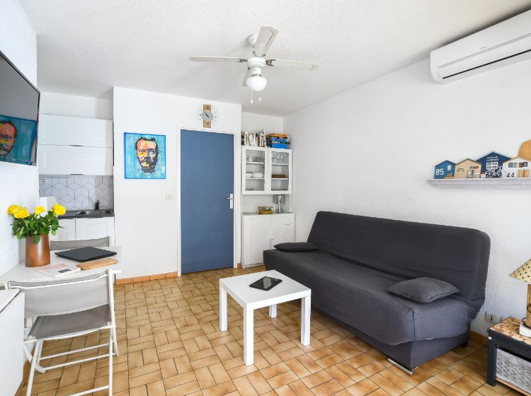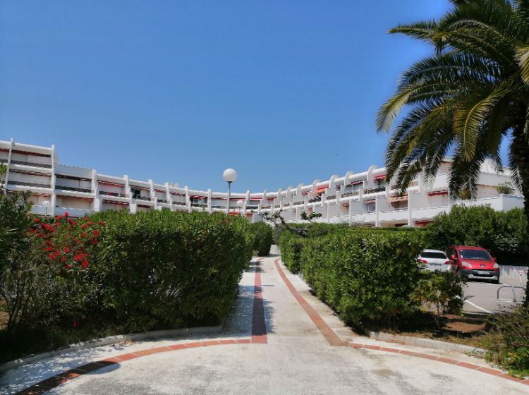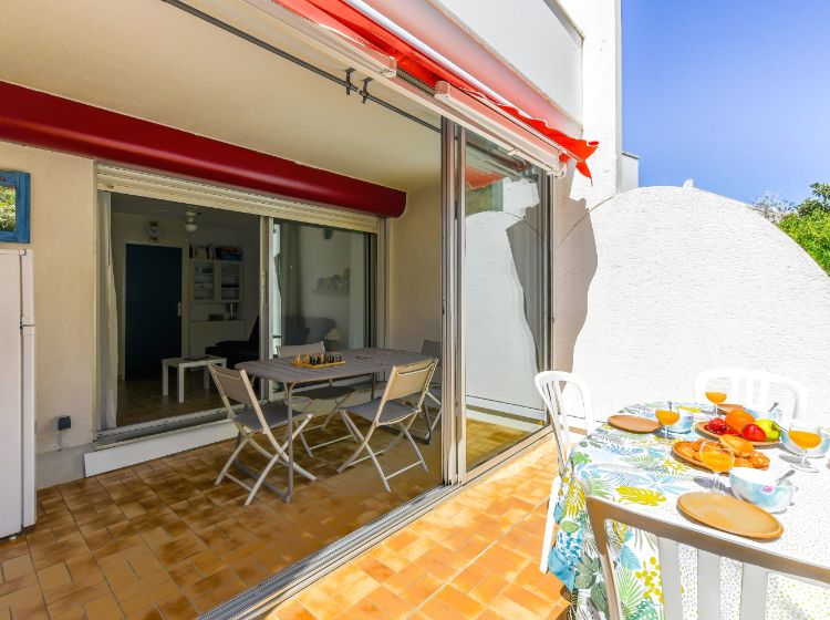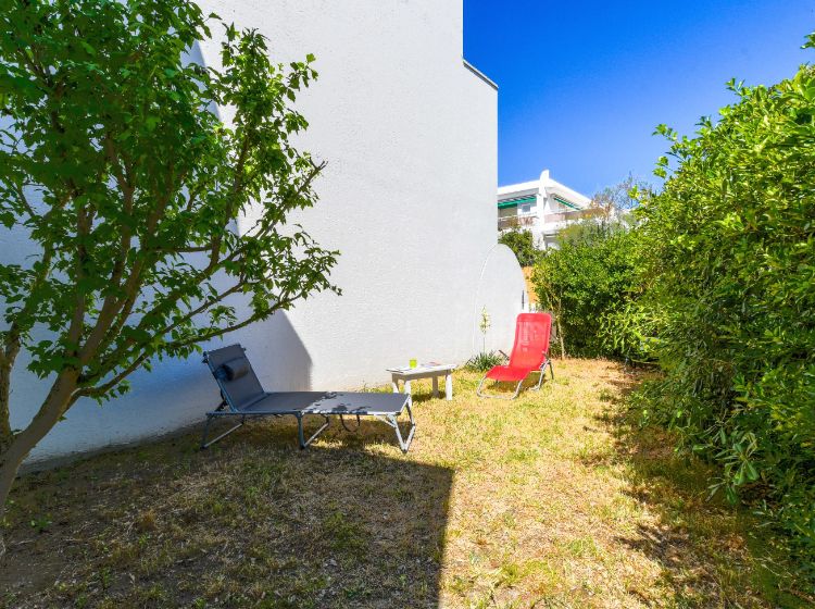 Studio cabine en rez-de-jardin, loggia fermée de 10M2 (1 table+ 6 chaises, 2 parasols, réfrigérateur congélateur de 260 litres).