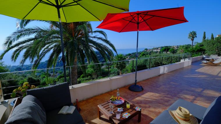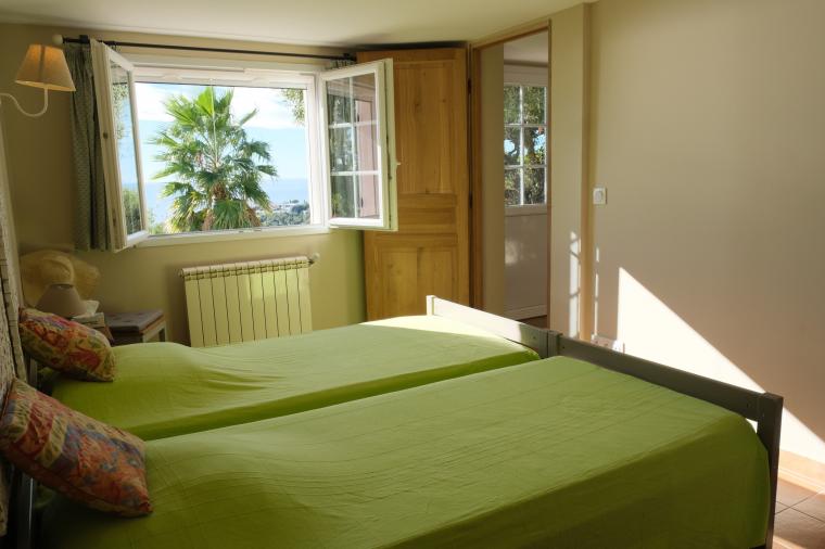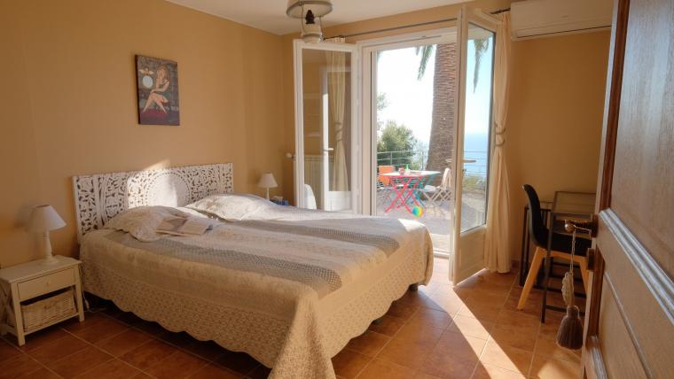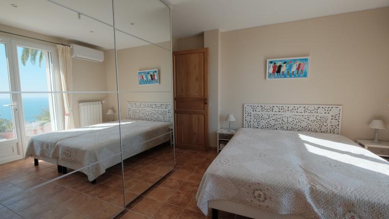 Vue mer de toutes les chambres. Propriété close sur terrain de 1300 m2 environ, portail électrifié, parking 2 ou 3 voitures, maison sous alarme.