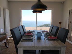 Villa récente de 180 m2 environ, avec piscine à débordement 10 x 5, vue mer panoramique et au calme. Comprenant : au Rez de Chaussée : un ensemble cuisine semi ouverte sur séjour salle à manger d’environ 70 m2, donnant sur vaste terrasse semi couverte face mer. Une chambre climatisée en suite avec salle d’eau-douche italienne, vasques pierre et wc séparé.