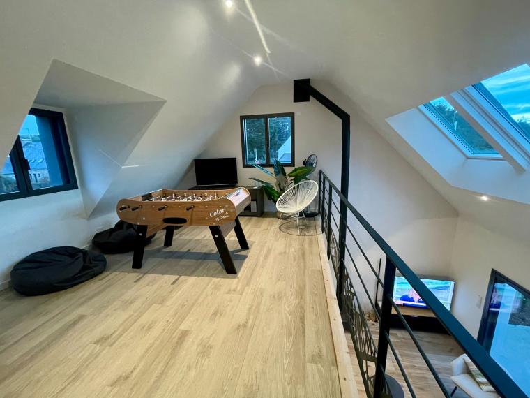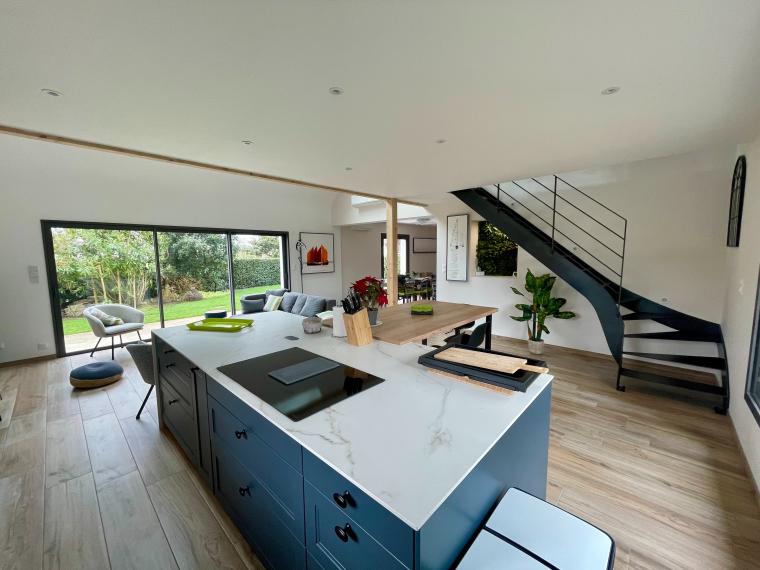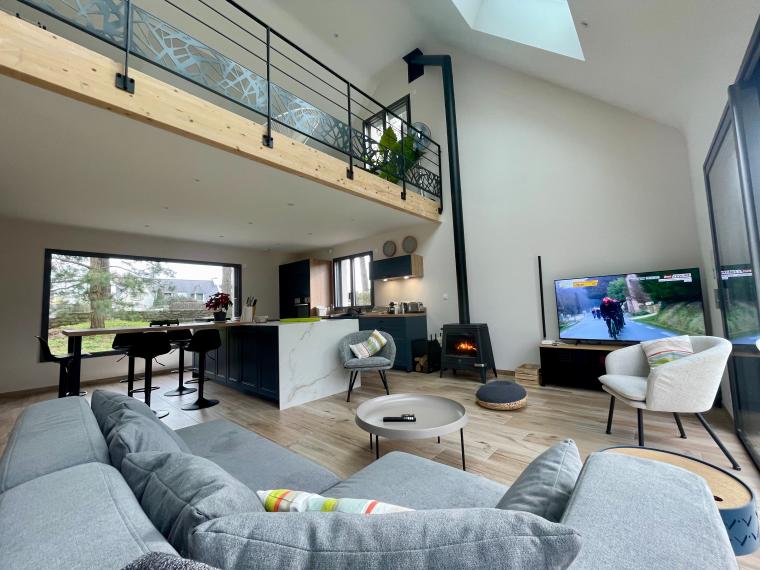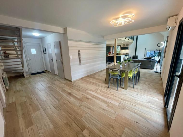 – Une grande pièce de vie d’environ 40m2 pour 8 personnes avec cuisine ouverte sur le séjour et la salle à manger