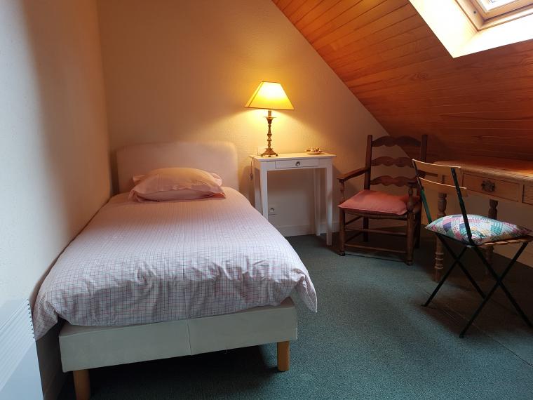 Au 1er étage : une chambre à deux lits de 1 personne (qui peuvent être rapprochés pour faire un seul couchage) et une chambre avec un lit 1 personne, une salle d’eau WC inclus.