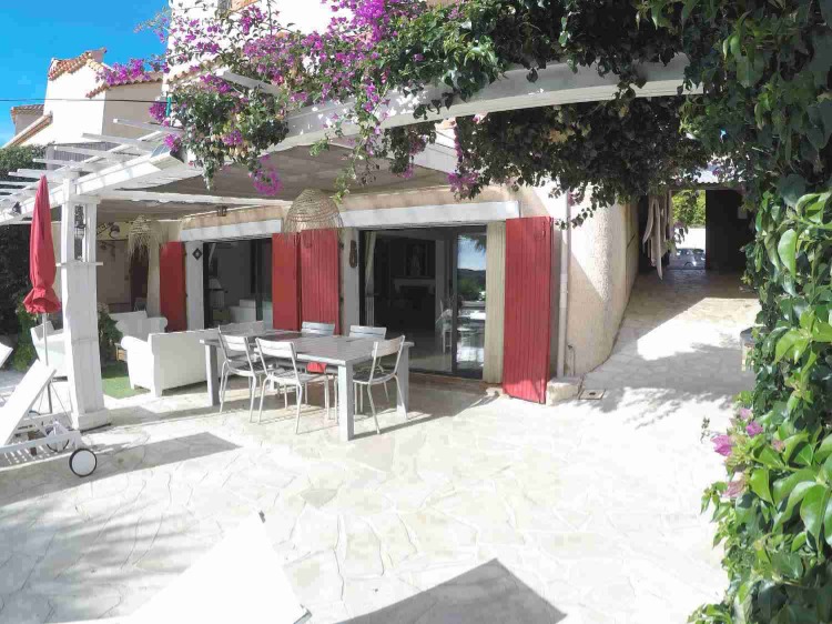 La villa se trouve côté mer sur un terrain de 350 m², elle se trouve face à l’île des Vieilles (poissons vivant dans les Posidonie). Une petite plage se trouve à 100 m² de la villa, si vous aviez des difficultés à utiliser l’échelle. Avec un masque, vous découvrirez les fonds devant la villa et autour de l’île, ils varient de 0.50 cm à 5-6 m et vous serez émerveillés en nageant autour de l’île.