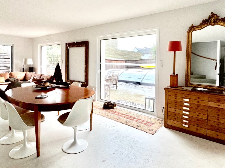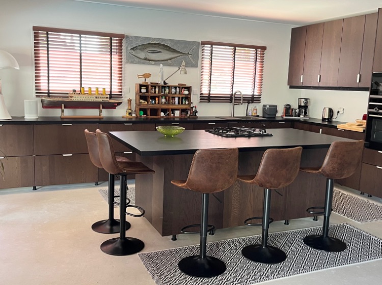 Au rez-de-chaussée: Grande pièce à vivre (50m2) avec cuisine ouverte, buanderie et salle d’eau (Sanitaires et douche à l’italienne).