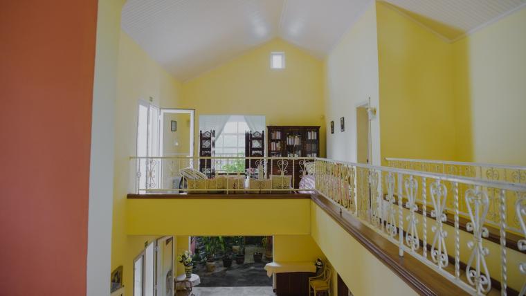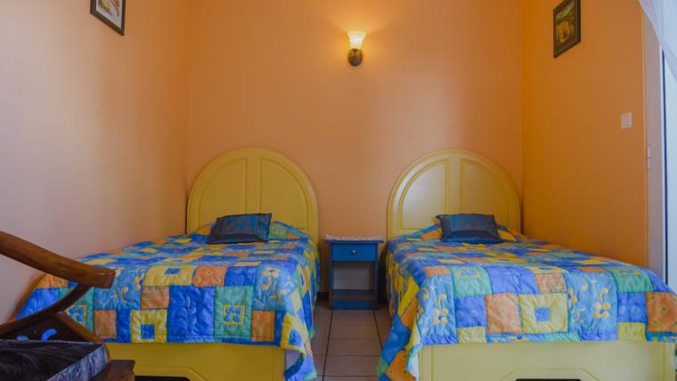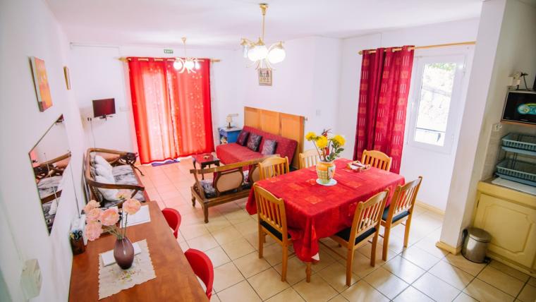 Villa Radha: au rez de chaussé: salon, séjour, cuisine équipée, tv, lit banquette, frigo, machine é laver, ouvrant sur un balcon puis à l’étage: 2 chambres à coucher climatisées, douche, toilette, ouvrant sur un balcon, vue imprenable –