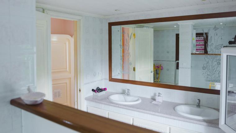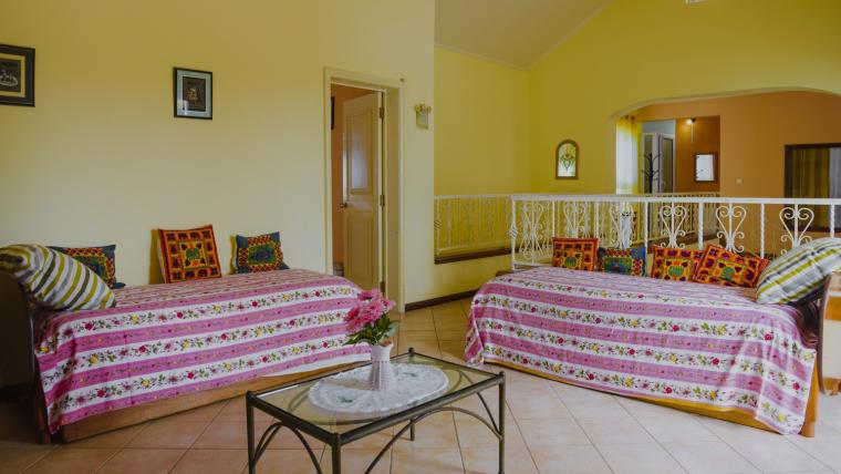 A l’étage: 4 chambres à coucher, 2 douches, 2 toilettes, 2 balcon, mezzanine, 2 lits enfants, table et coin massage