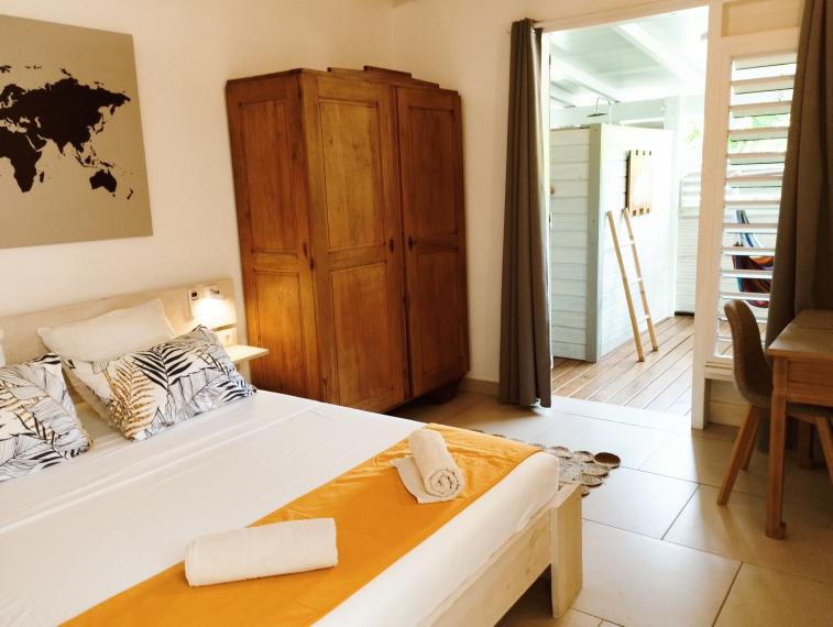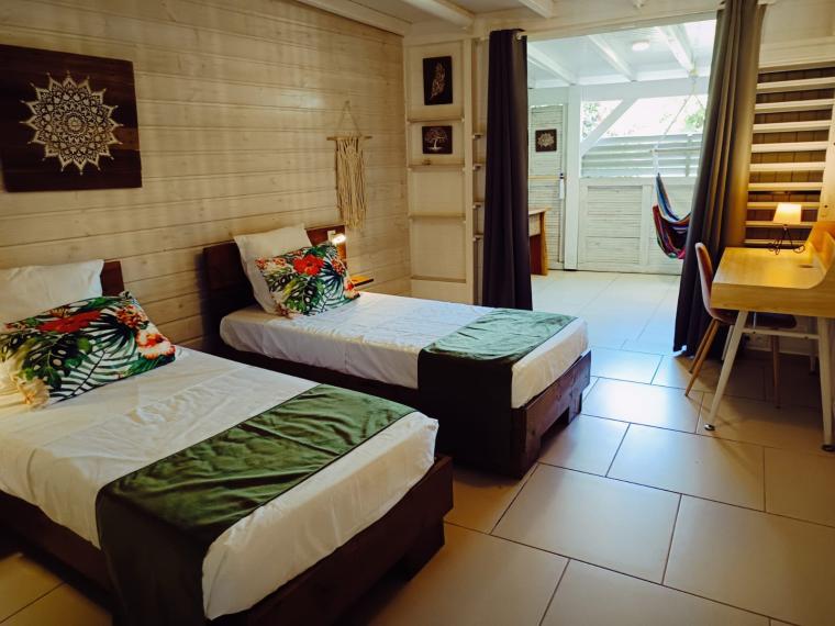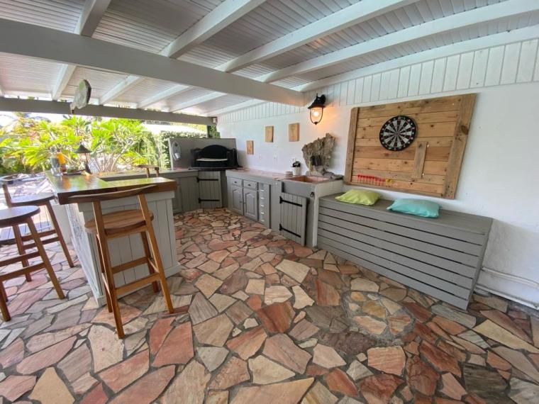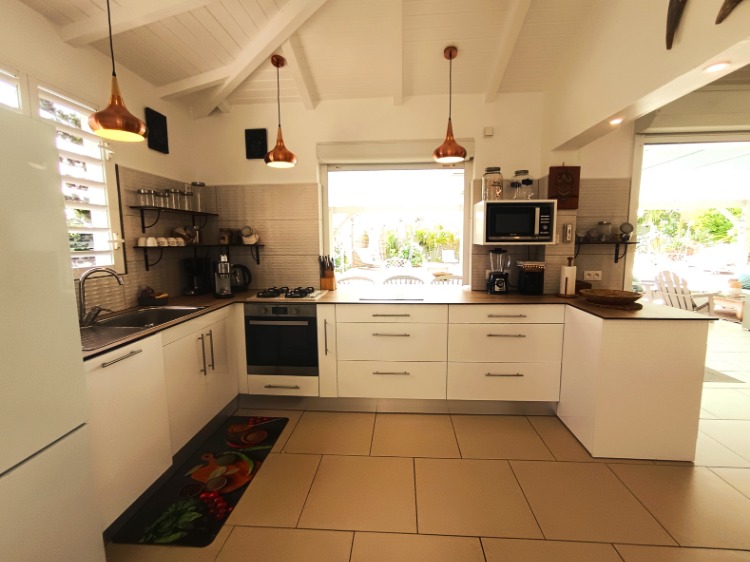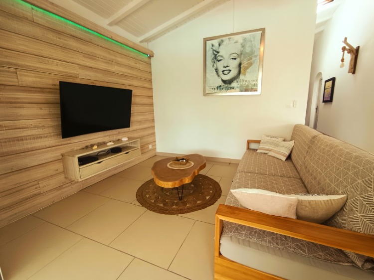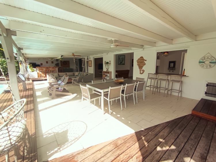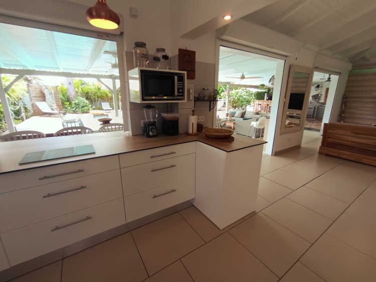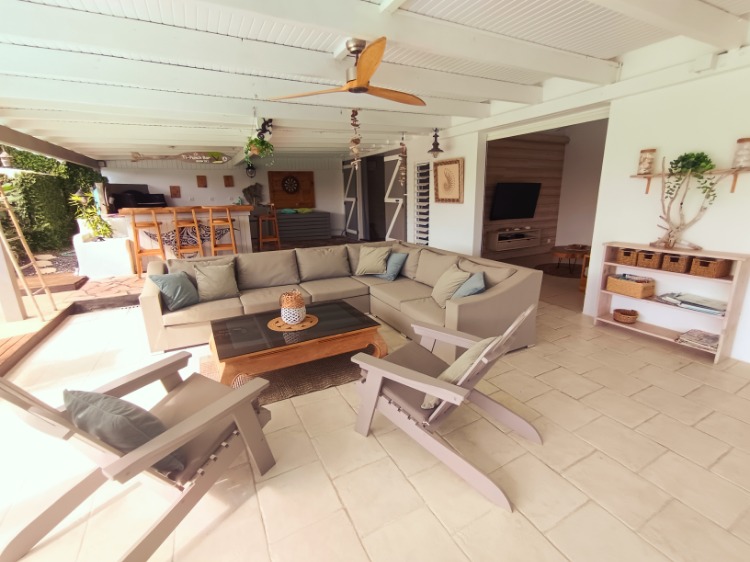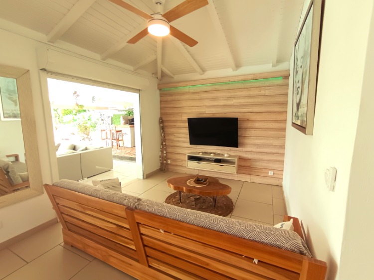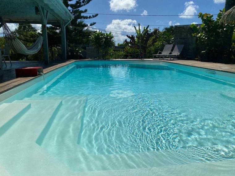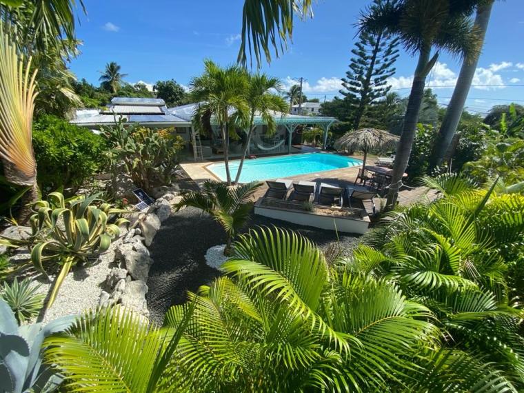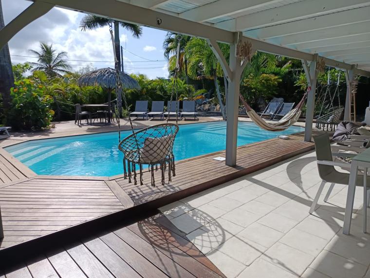 Voir les 28 photosVilla de charme à la décoration cosy et tropicale où chacun trouvera sa place en toute intimité. Grande piscine privée au sel, classée meublé de tourisme 3* de 250 m2 à 5 km de François centre et ses plages, 4 chambres climatisées, 4 salles de douche (2 intérieures et 2 extérieures) pour 8 personnes dans un jardin tropical de 1000 m2 clos, spot de surf et kite entre 5 et 15mn.