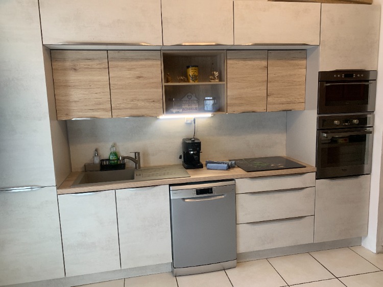 Voir les 16 photosAu rez-de-chaussée se trouve la pièce de vie : Salon avec un canapé d’angle convertible confortable, Salle à Manger et sa Cuisine ouverte et refaite récemment et tout équipée.