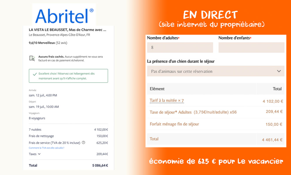 Le même séjour réservé sur Abritel vs en direct :