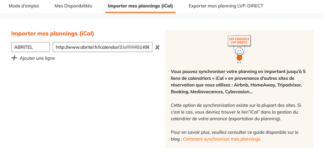 Si vous publiez votre annonce sur plusieurs sites, cette méthode permet de synchroniser vos différents plannings depuis des liens “iCal” qui se chargeront de maintenir automatiquement votre planning à jour sur tous vos sites utilisant ce protocole standardisé d’échanges de données entre calendriers.