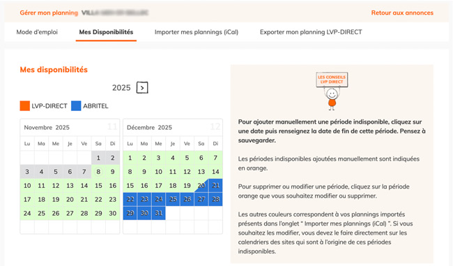 • Chaque propriétaire reste votre unique interlocuteur. LVPDIRECT n’est pas le mandataire du propriétaire et n’intervient aucunement dans le processus de réservation.